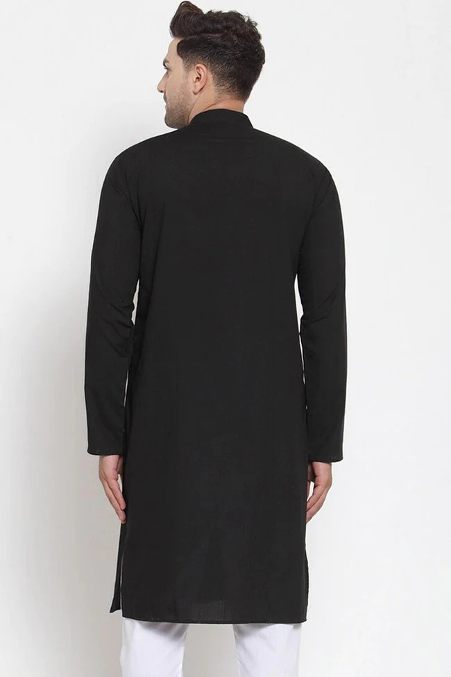Men's Black Cotton Solid Kurta Only
