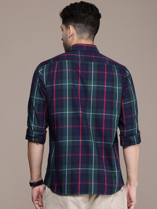 Green tartan checks checked opaque Casual shirt ,has a spread collar, button placket, long regular sleeves, curved hem